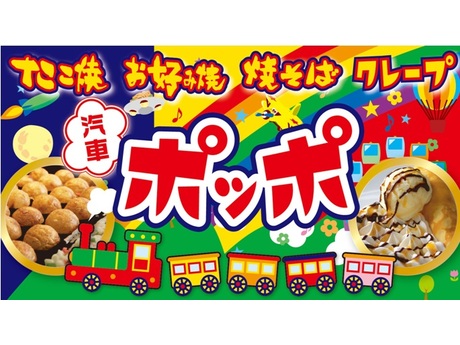 ☆・:*。・' たこ焼・お好み焼などの粉モン・ふわふわ生地のクレープが楽しめる汽車ポッポ '・。*:・☆